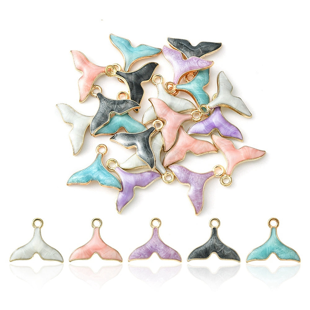 5 Colors Alloy Enamel Pendants, Whale Tail Shape, Light Gold, Mixed Color Size: about 15mm long