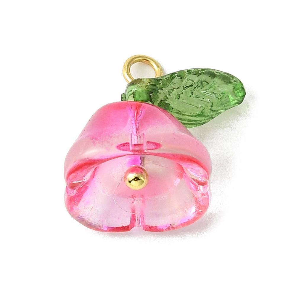 Transparent Acrylic Pendants, with Glass, Flower Charm, Mixed Color