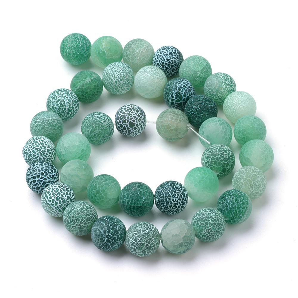 Natural & Dyed Crackle Agate Bead Strands, Frosted Style, Round, Green