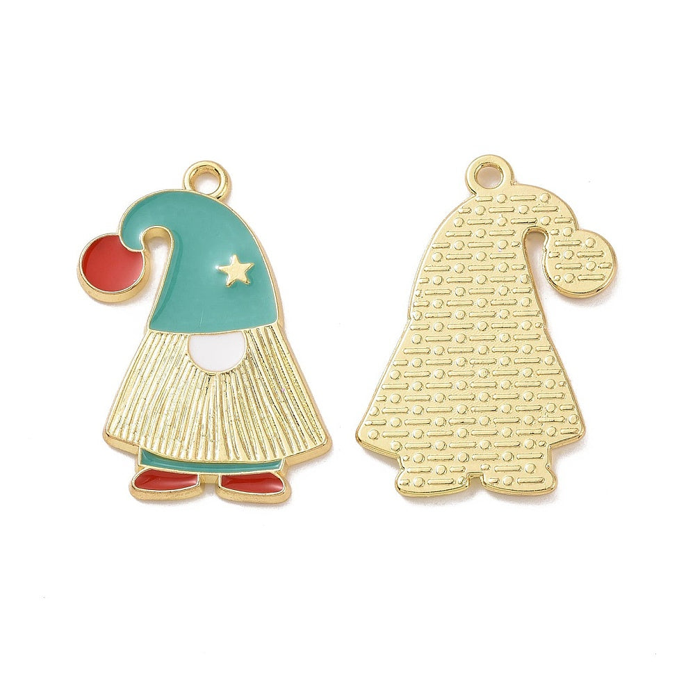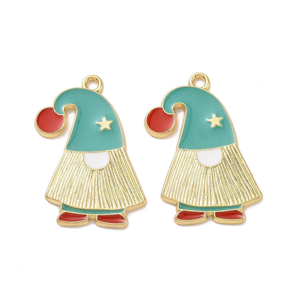 Alloy Enamel Pendants, Light Gold Tone Gnome Pendant 4 Pack