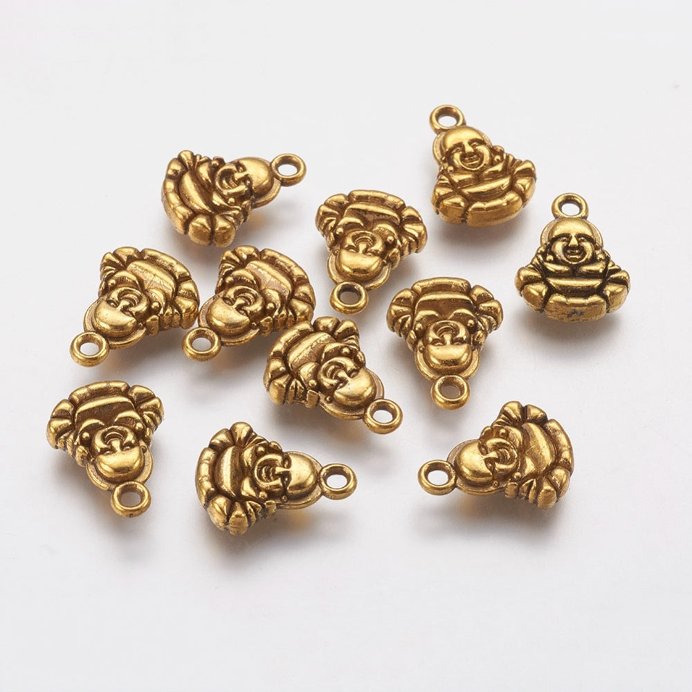 Alloy Pendants, Lead Free, Buddha, Antique Golden 10pack