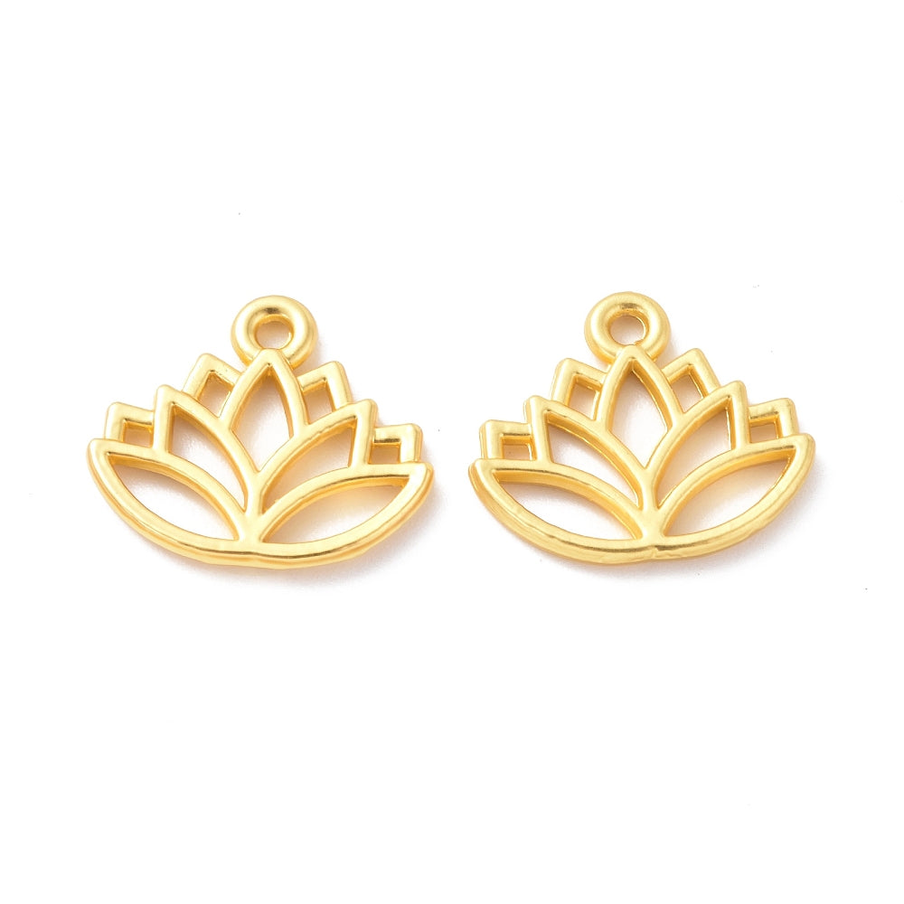 Alloy Pendants, Lotus Charm Matte 5 pack Gold Color