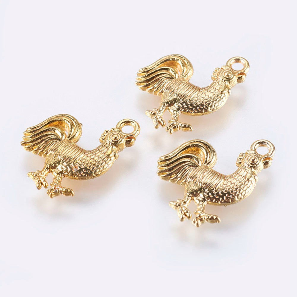 Alloy Pendants, Real 18K Gold Plated, Chicken, Golden 2PK