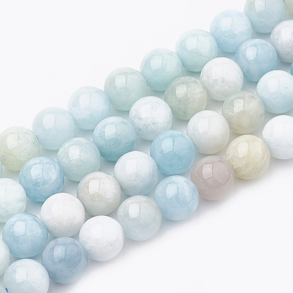 Natural Aquamarine Beads Strands, Round Size: about 8~9mm in diameter, hole: 1mm; about 45~48pcs/strand, 15.7 inch.