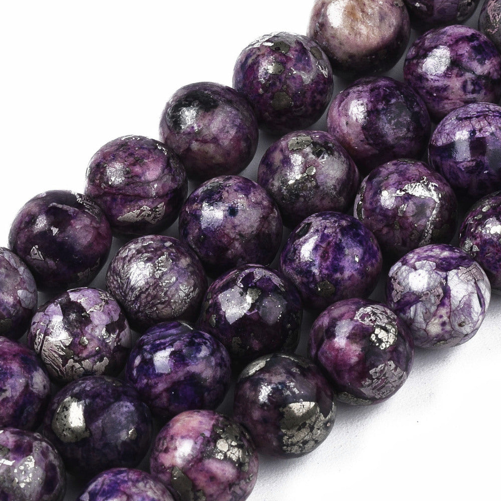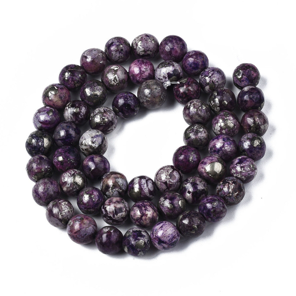 Assembled Charoite and Pyrite Beads Strands, Round,