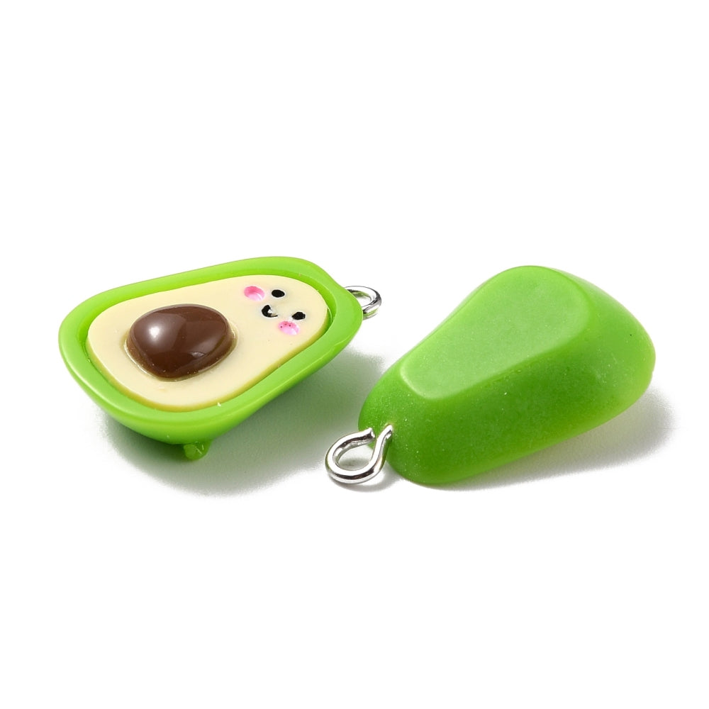 Resin Pendants, with Platinum Iron Peg Bail, Avocado, Lawn Green 2pk