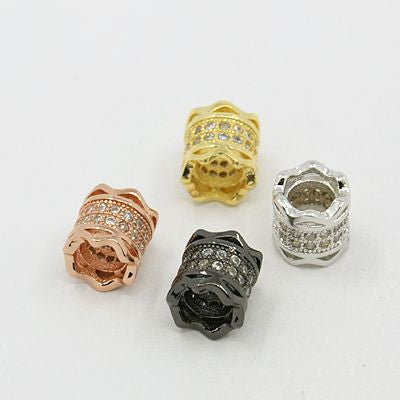Brass Cubic Zirconia European Beads, Column, Mixed Color