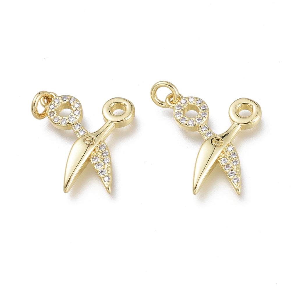 Brass Micro Pave Clear Cubic Zirconia Scissor Charm, with Jump Rings, Long-Lasting Plated, Real 18K Gold Plated