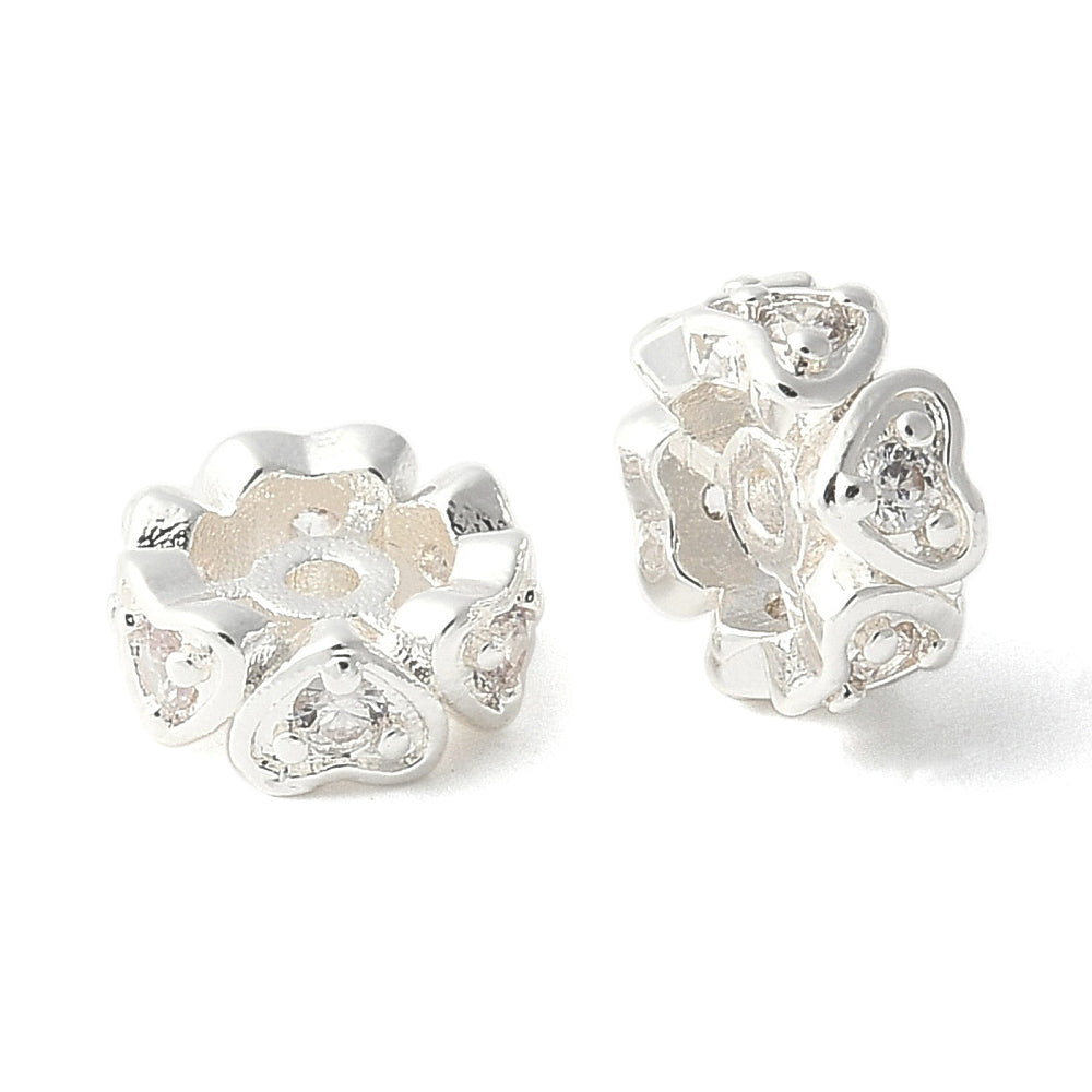 Brass Micro Pave Clear Cubic Zirconia Wheel Beads, Heart, Silver Size: about 8mm in diameter, 3.5mm thick, hole: 1.2mm. 2Pk