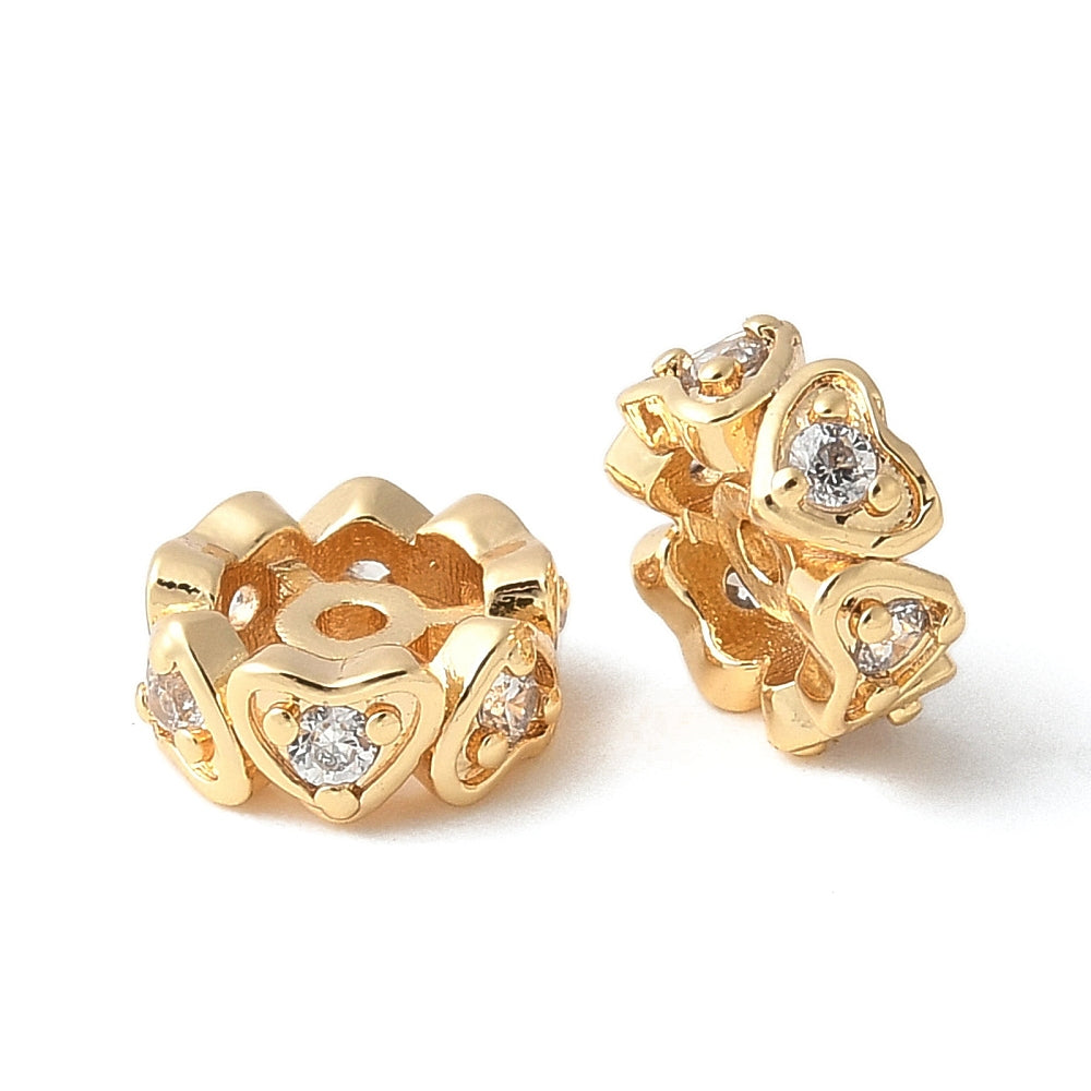 Brass Micro Pave Clear Cubic Zirconia Wheel Beads, Heart, Real 18K Gold Plated Size: about 8mm in diameter, 3.5mm thick, hole: 1.2mm. 2Pk