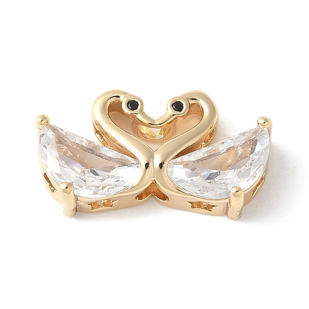 Brass Micro Pave Cubic Zirconia Beads, Double Swan, Real 18K Gold Plated Size: about 17mm wide, 9mm long, 5mm thick, hole: 2mm.