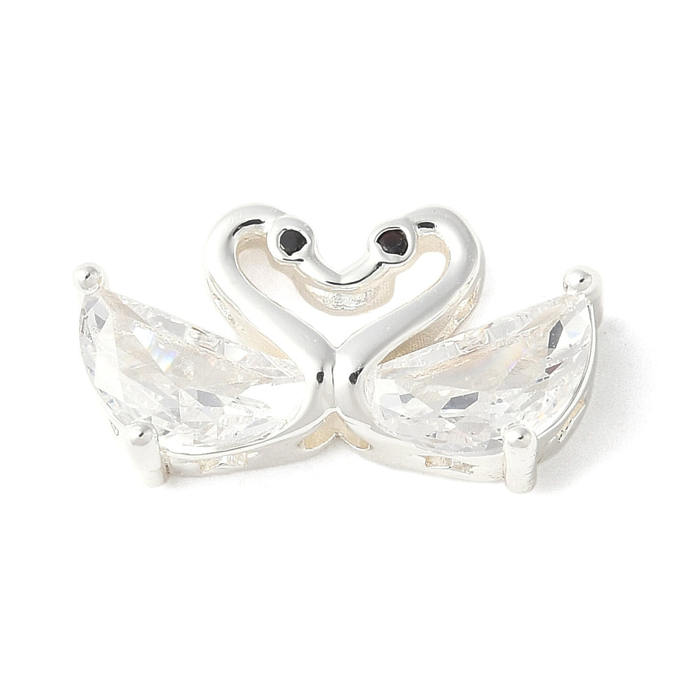 Brass Micro Pave Cubic Zirconia Beads, Double Swan, 925 Sterling Silver Plated Size: about 17mm wide, 9mm long, 5mm thick, hole: 2mm.