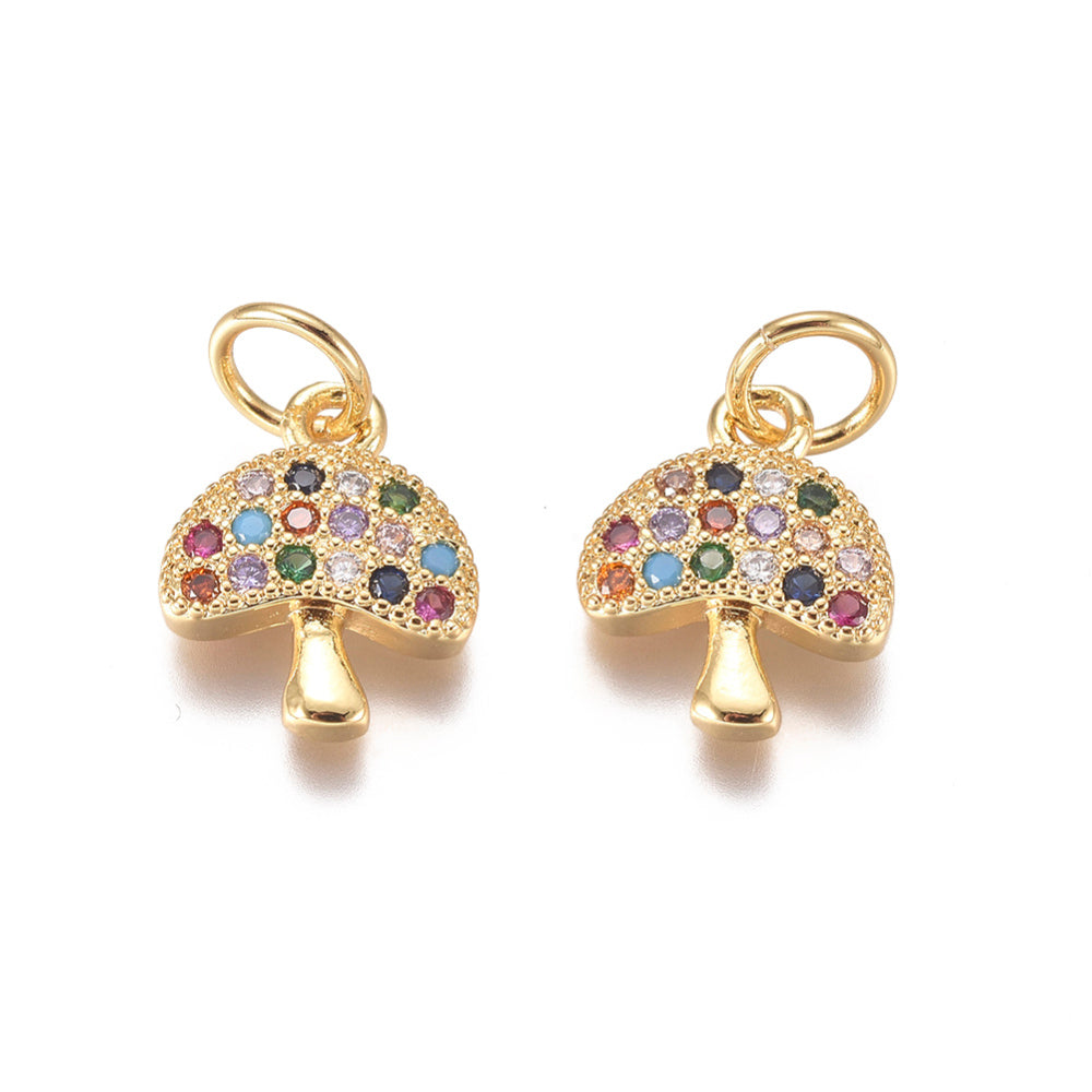 Brass Micro Pave Cubic Zirconia Charms, with Jump Rings, Mushroom, Colorful, Platinum or Gold