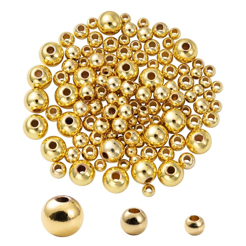 120Pcs 3 Size Rack Plating and Vacuum Plating Brass Round Spacer Beads Set, Cadmium Free & Lead Free, Golden