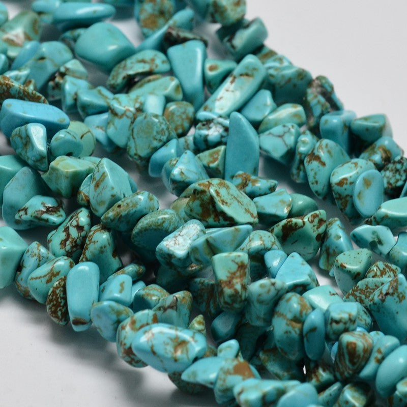 Chips Howlite Beads Strands, Dyed, Dark Turquoise