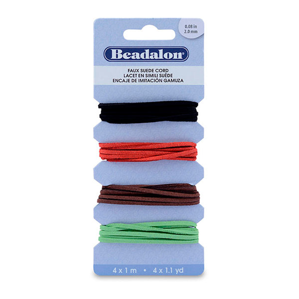 Cord Variety Pack, Faux Suede, 2 mm / .08 in, Black, Red, Brown, Green, 1 m / 1.1 yd