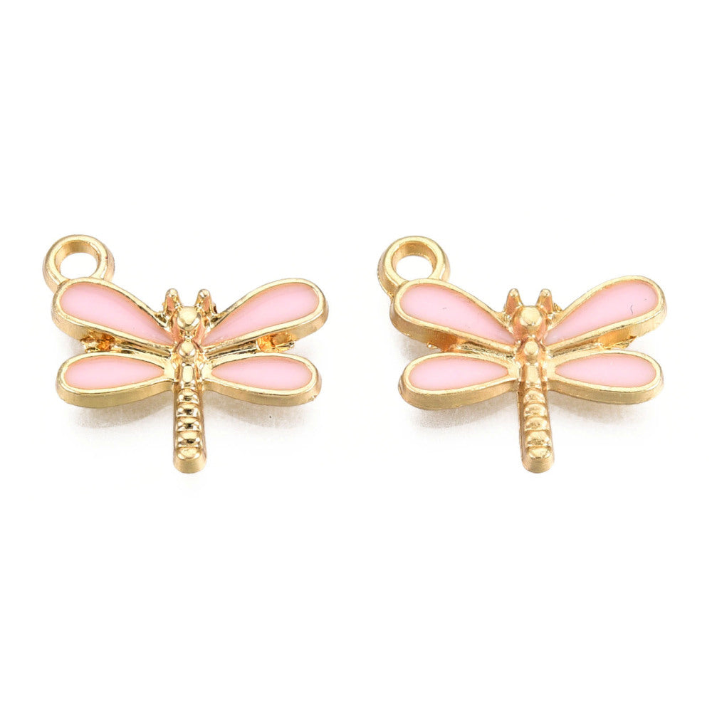 Dragonfly Enamel Alloy Charms 5 pack Pink, Blue, White 5 Pack