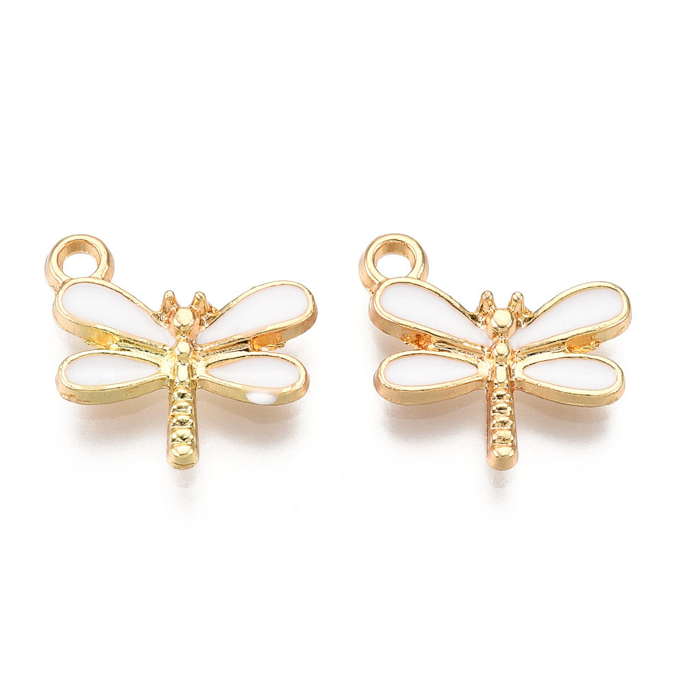 Light Gold Plated Alloy Charms, with Enamel, Dragonfly, Pearl Pink, Blue & White 5 Pack