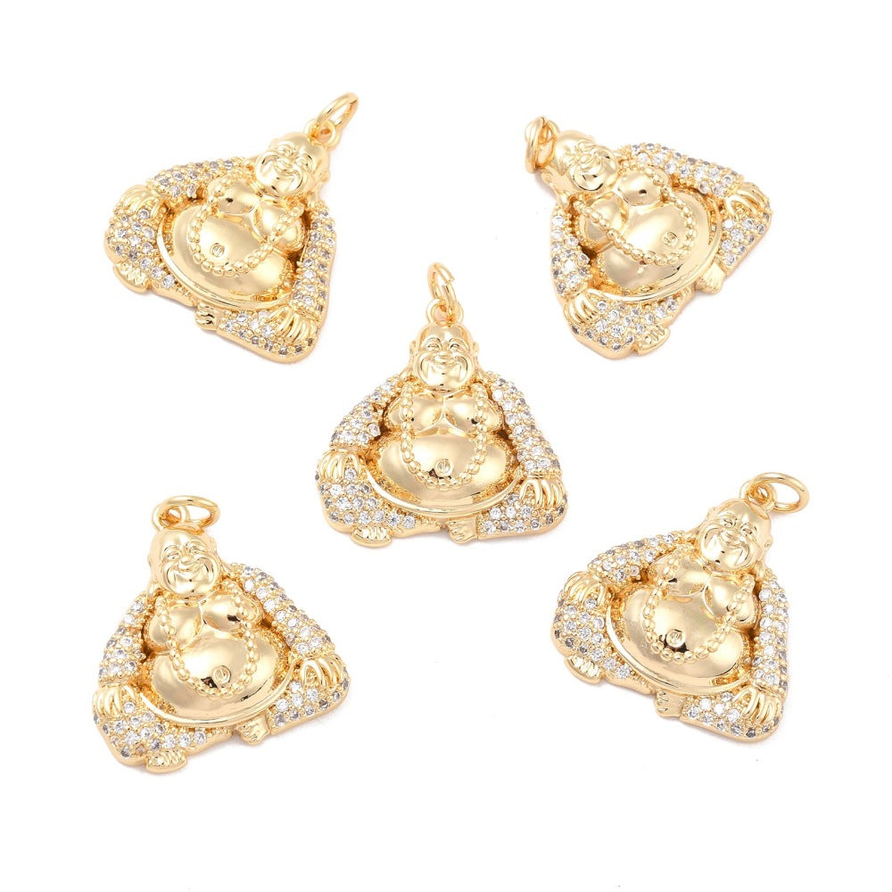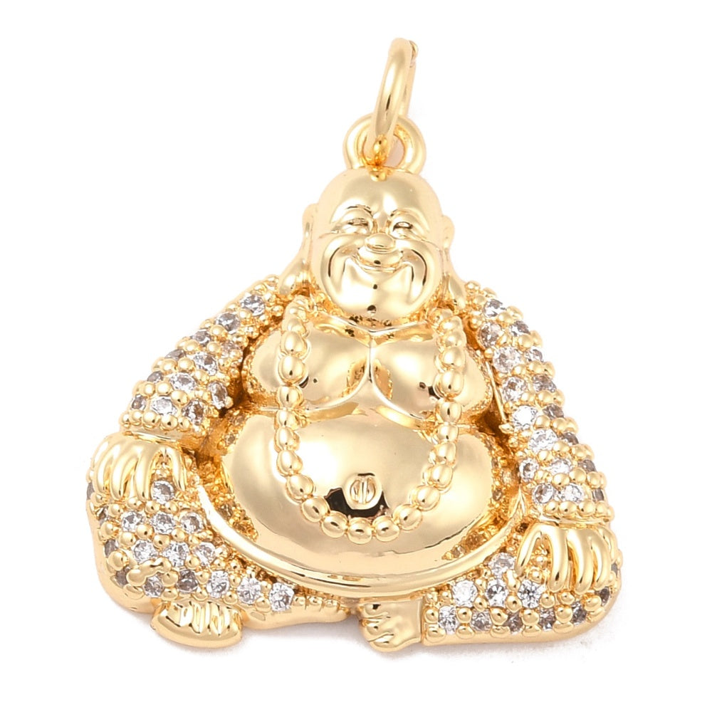 Eco-Friendly Brass Micro Pave Cubic Zirconia Pendants, Long-Lasting Plated, Lead Free & Cadmium Free & Nickel Free, Real 18K Gold Plated, Buddha, Real 18K Gold Plated