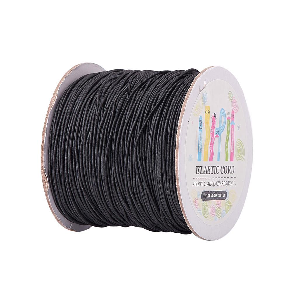 Elastic Cord, with Nylon Outside and Rubber Inside, Round, Black Size: about 1mm in diameter, about 109.36yards/roll(100m/roll).