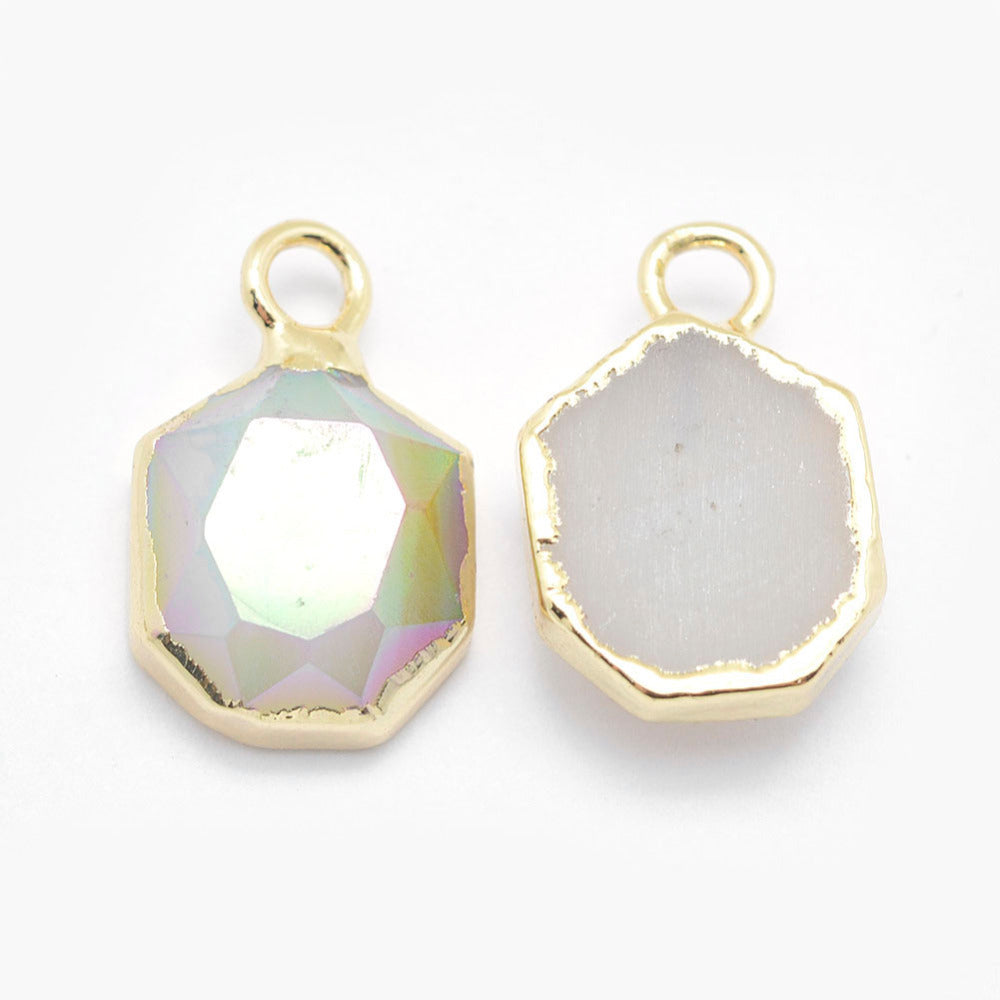 Electroplate Natural Druzy Agate Pendants, with Brass Findings, Faceted, Heptagon, Golden, White