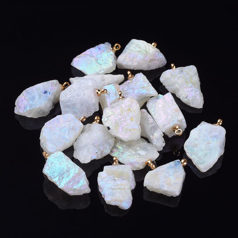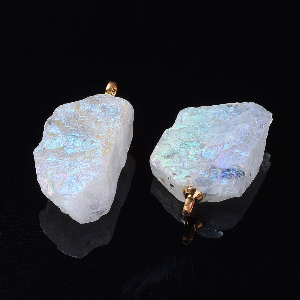 Electroplate Natural Moonstone Pendants, with Golden Tone Brass Findings, Nuggets,