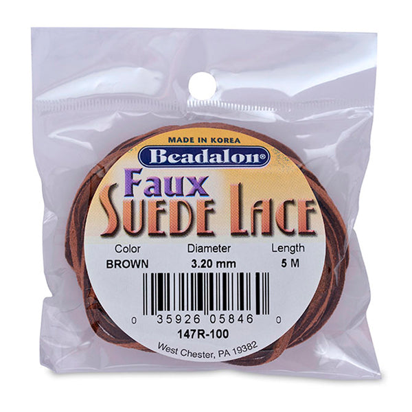 Faux Suede Lace, 3.2 mm / 0.13 in, Brown, 5 m / 16.4 ft