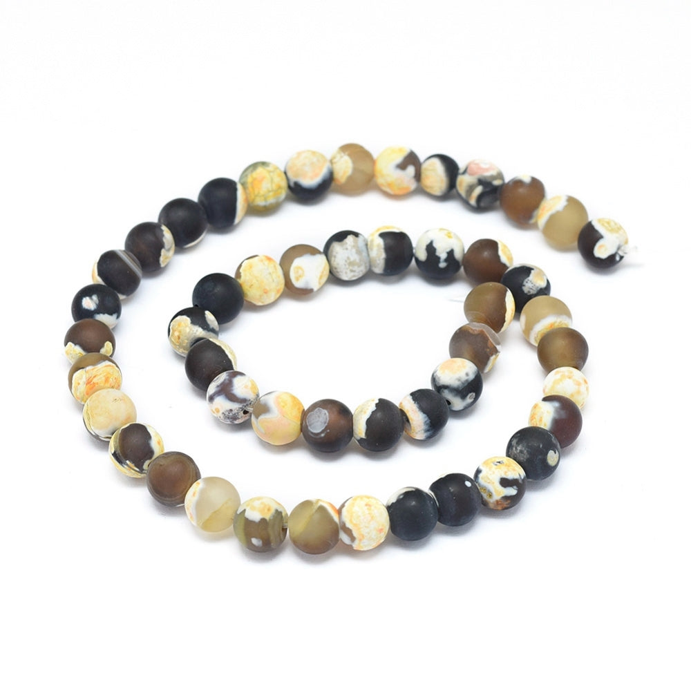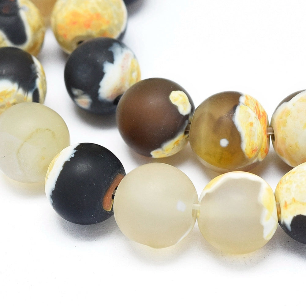 Natural Fire Crackle Agate Bead Strands, Dyed & Heated, Frosted, Round, Yellow