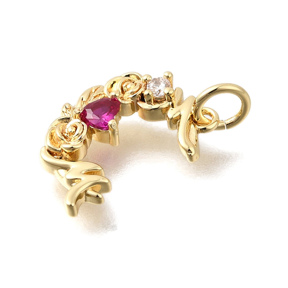 Flower Charms, Rack Plating, Lasting Plated, 18k Gold Plated Brass Micro Pave Cubic Zirconia