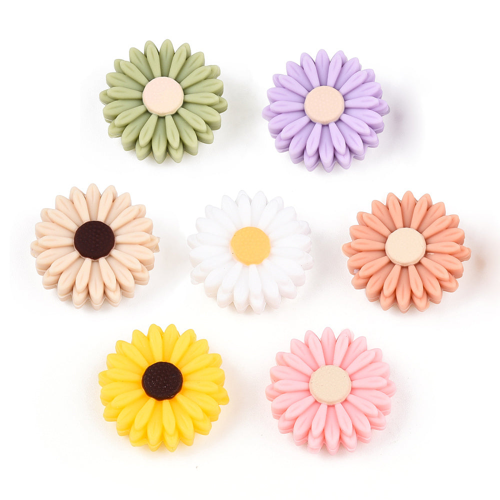 Food Grade Eco-Friendly Silicone Focal Beads, Daisy, Mixed Color