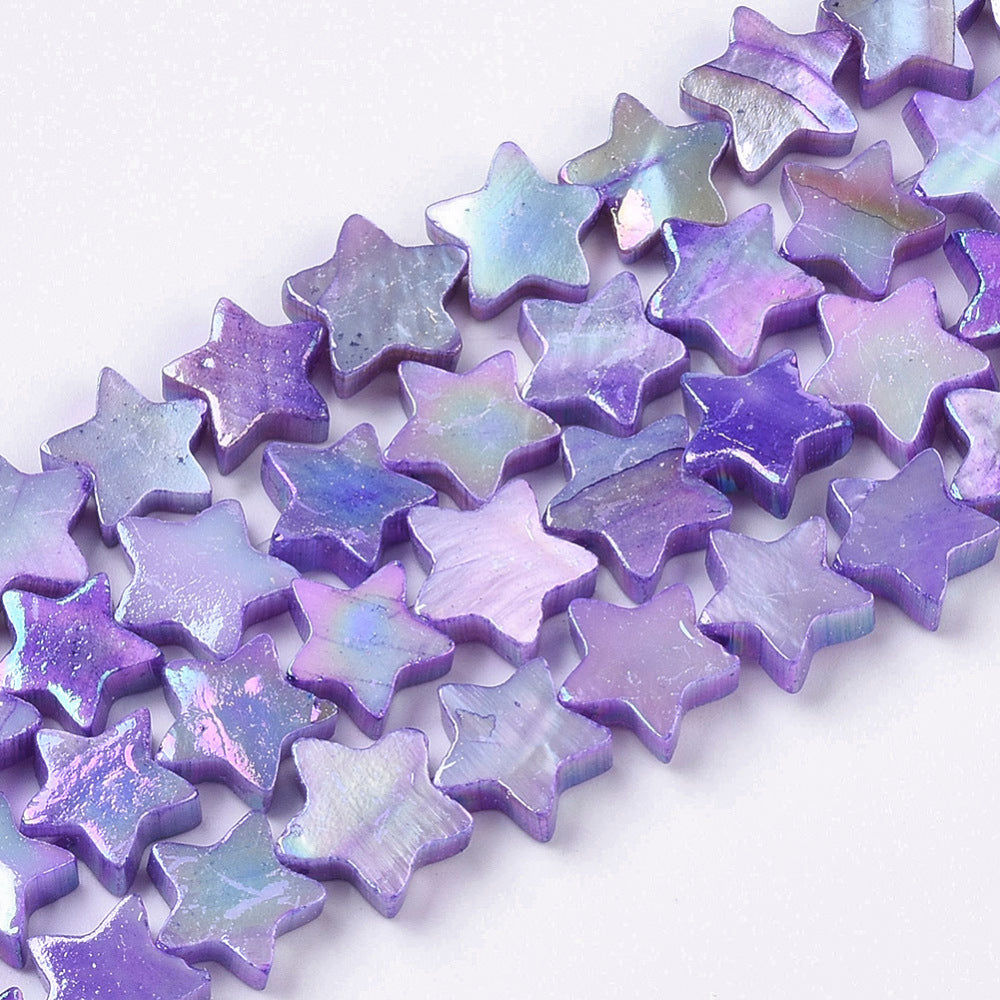 Freshwater Shell Beads Strands, AB Color Plated, Dyed, Star, Medium Purple
