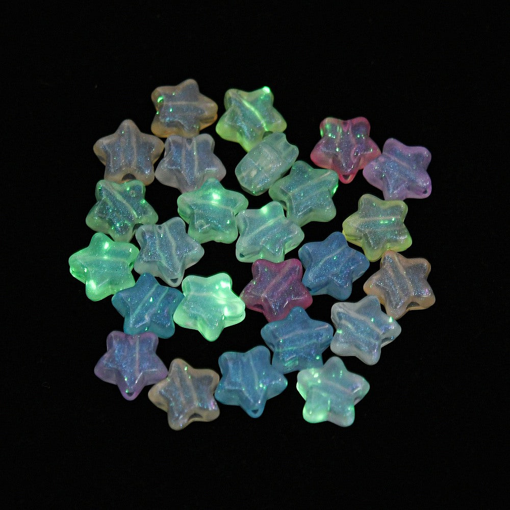 Glow in the Dark, Star Glitter Beads Mixed Color Bulk