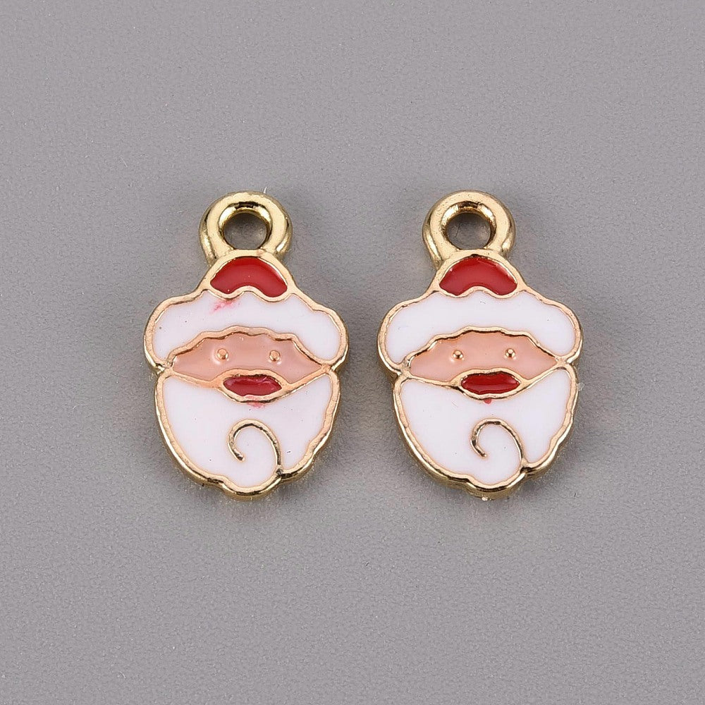 Golden Plated Alloy Enamel Pendants, Christmas Santa Claus, 5 Pack