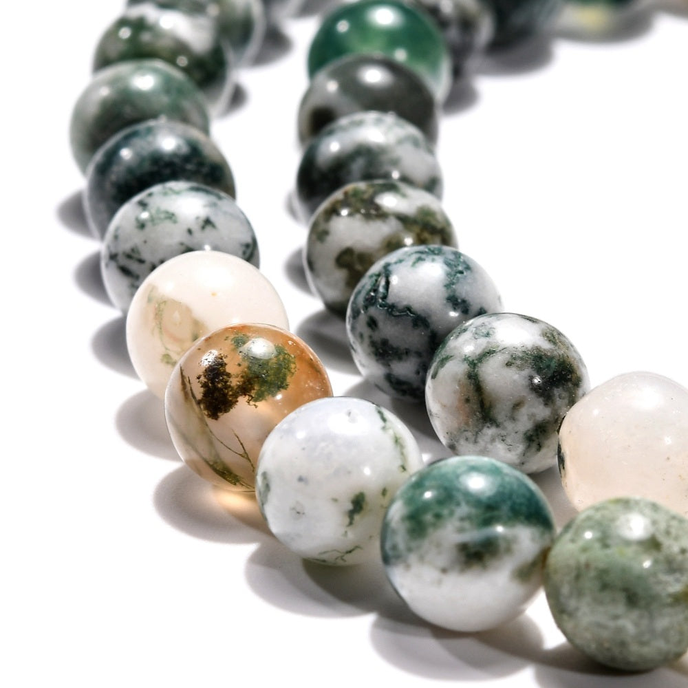 Natural Tree Agate Beads Strands, Round, Medium Sea Green