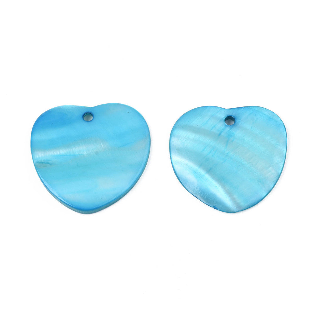 Heart Freshwater Shell Pendants Dyed Sky Blue 2 Pk