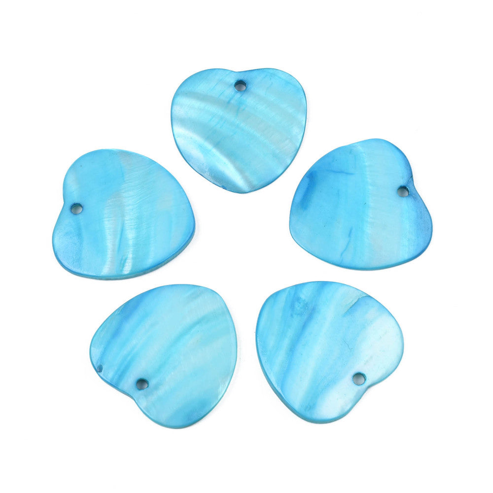 Natural Freshwater Shell Pendants, Dyed, Heart, Deep Sky Blue 2 Pack