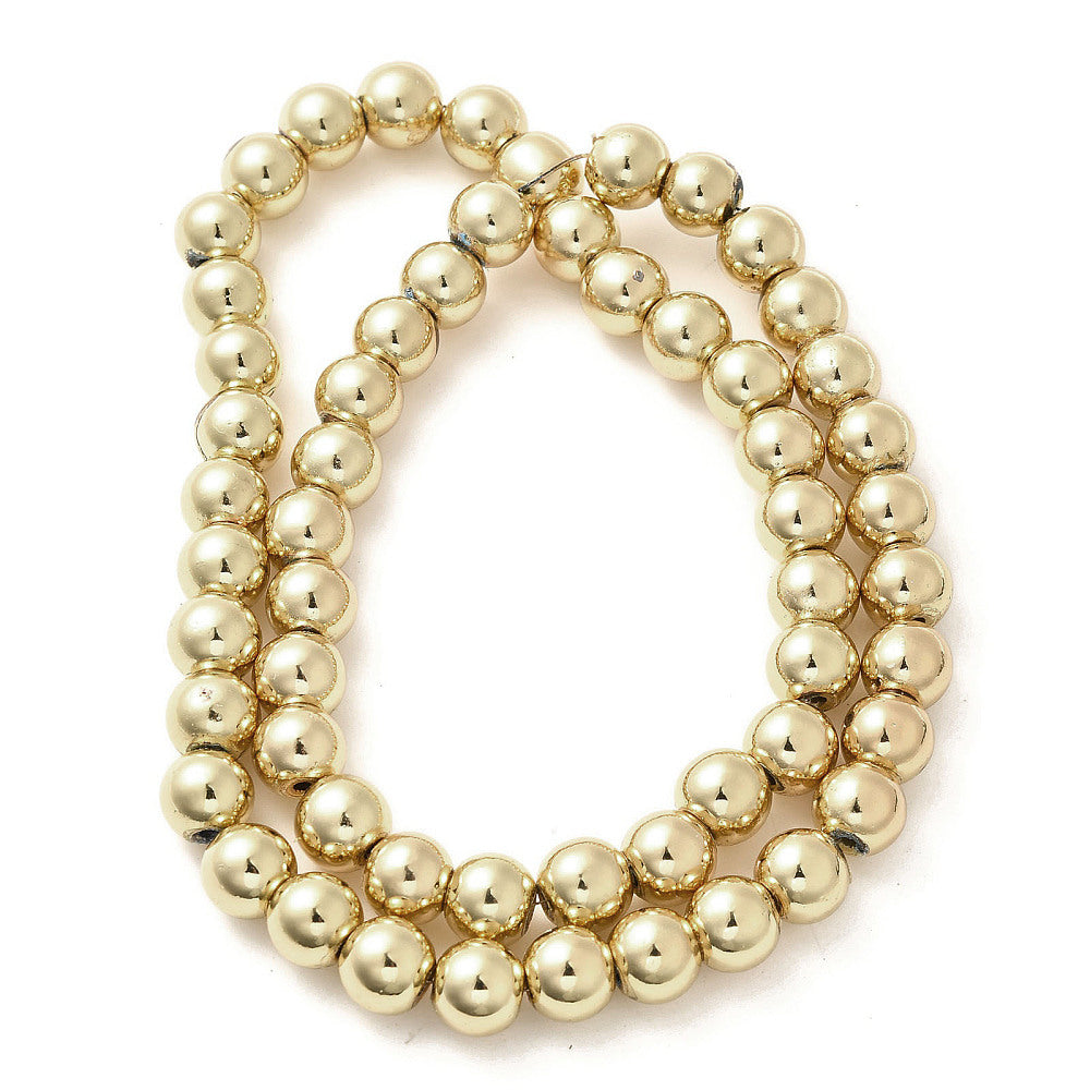 Electroplated Magnetic Hematite Beads Strands, Grade AAA, Round, Light Gold Plated