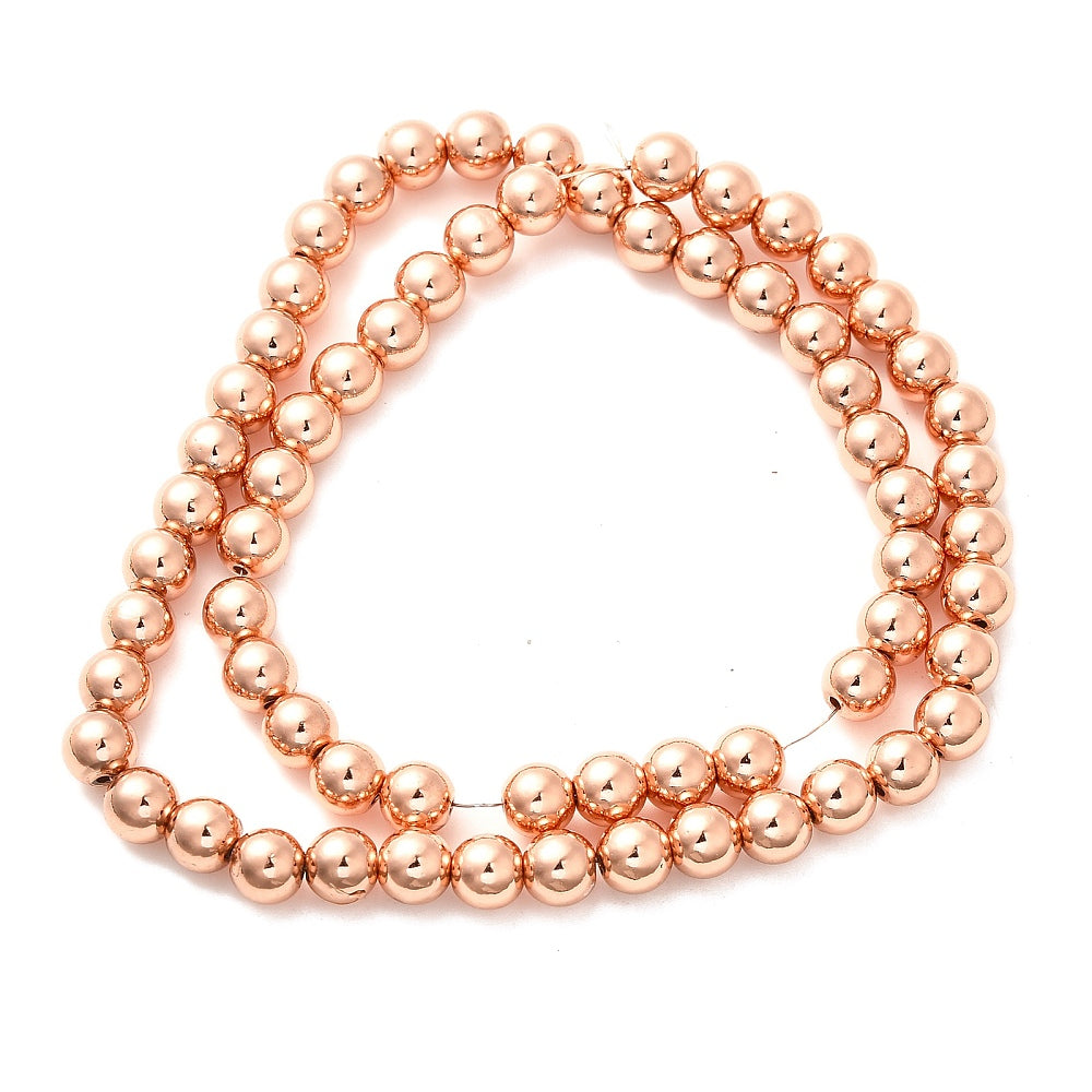 Hematite Beads Strands, Grade AAA, Round, Rose Gold Plated Magnetic 6mm