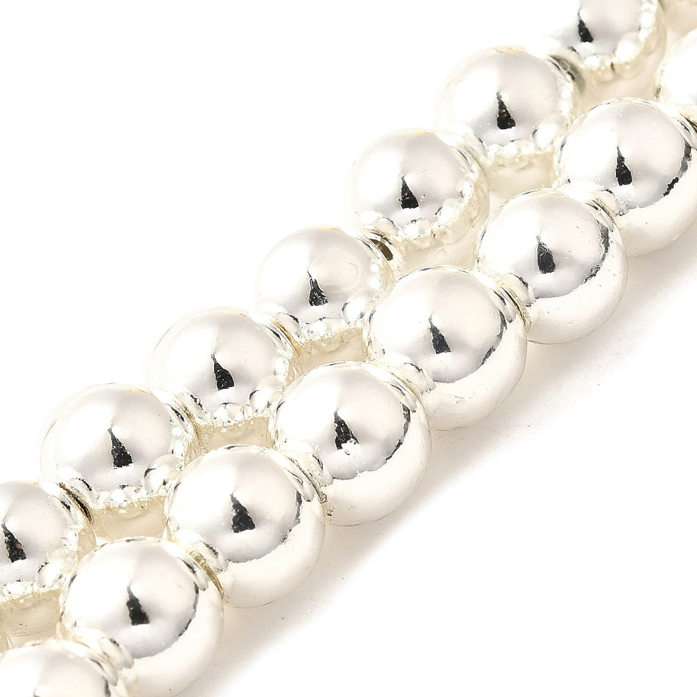 Electroplated Magnetic Hematite Beads Strands, Grade AAA, Round, Silver Plated Size: about 8mm in diameter, hole: 1.4mm, about 56pcs/strand, 15.75 inch(40cm).