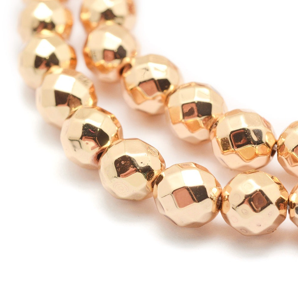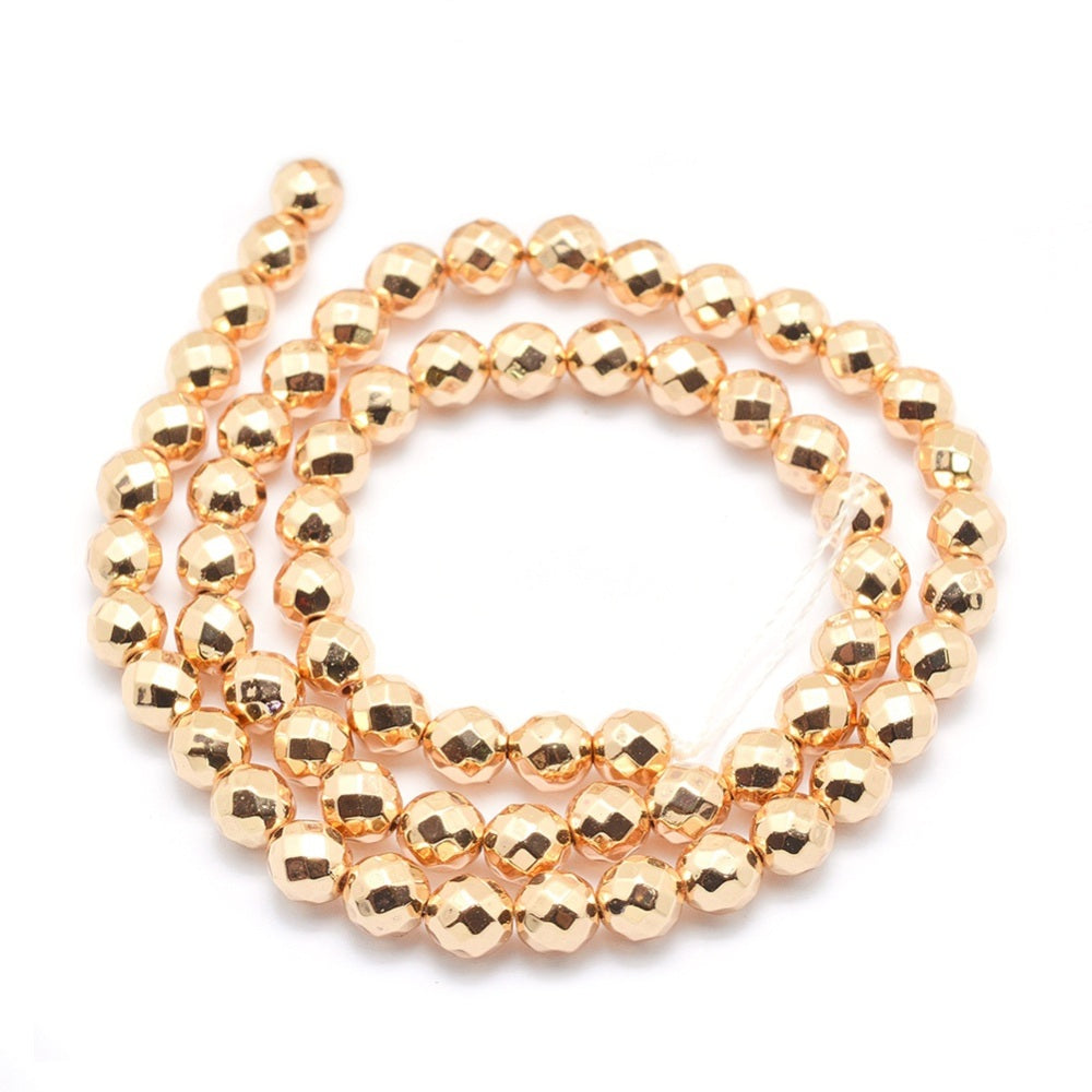Hematite Faceted Grade AAA Long Lasting Plated 4mm Light Gold Bead Strands