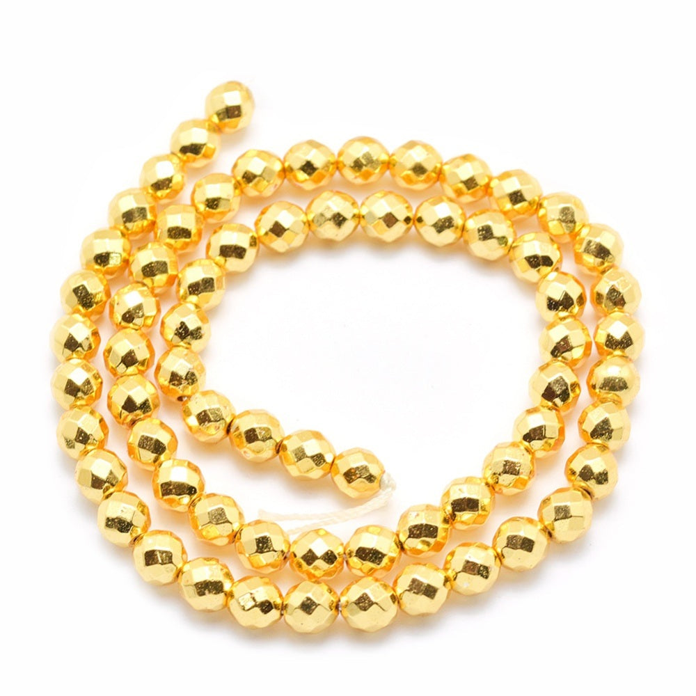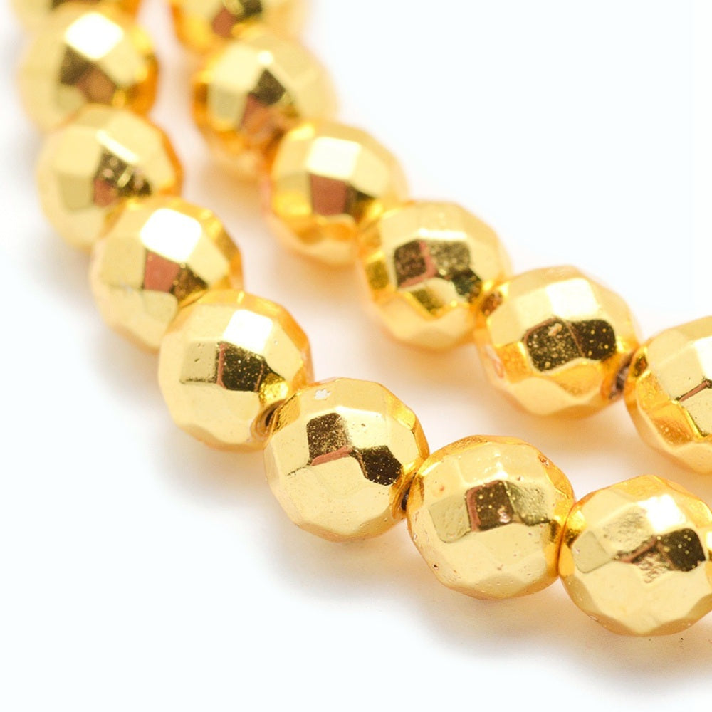 Hematite Grade AAA Long Lasting Plated 4mm Faceted Bead Strands Golden
