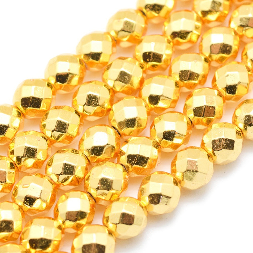Electroplate Non-magnetic Hematite Beads Strands, Grade AAA, Long-Lasting Plated, Faceted, Round, Golden Plated
