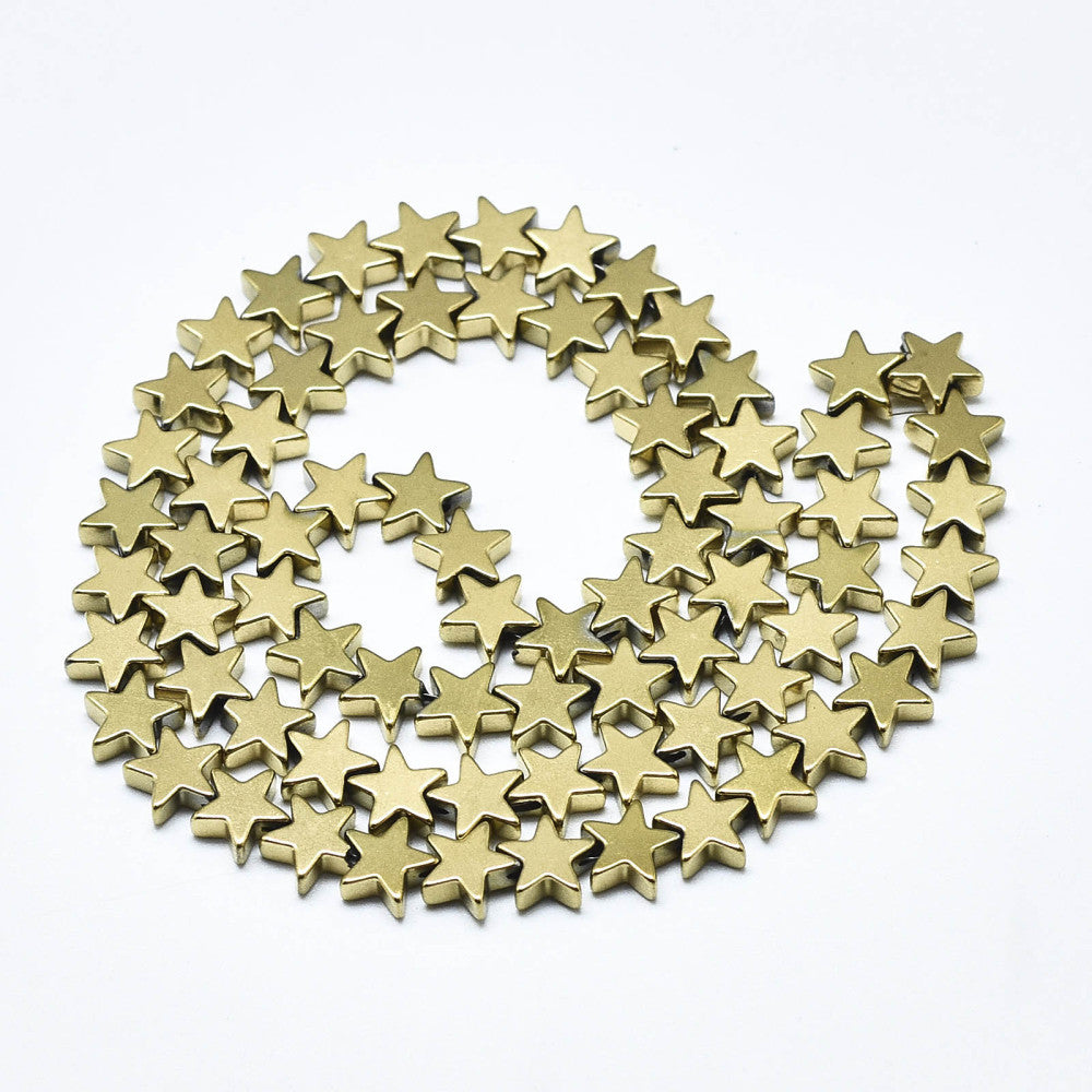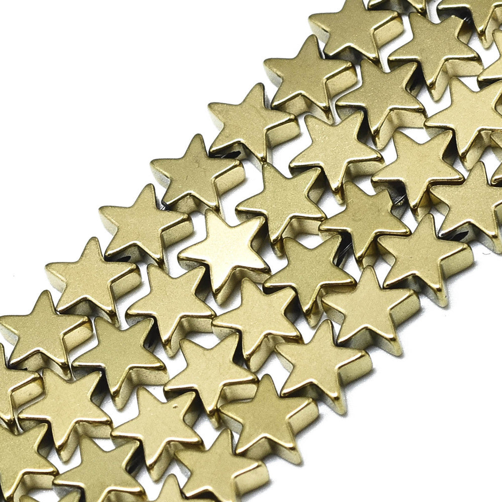 Electroplate Hematite Beads Strands, Star, Real 18K Gold Plated
