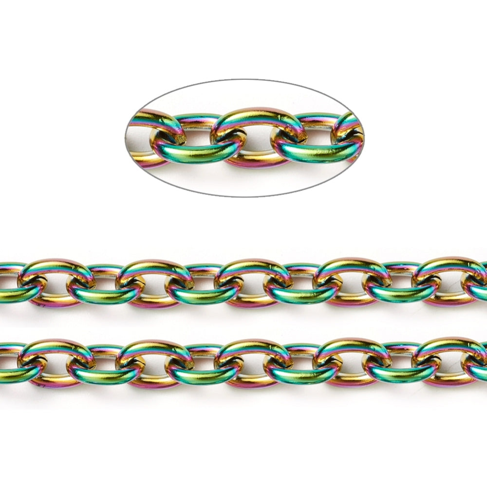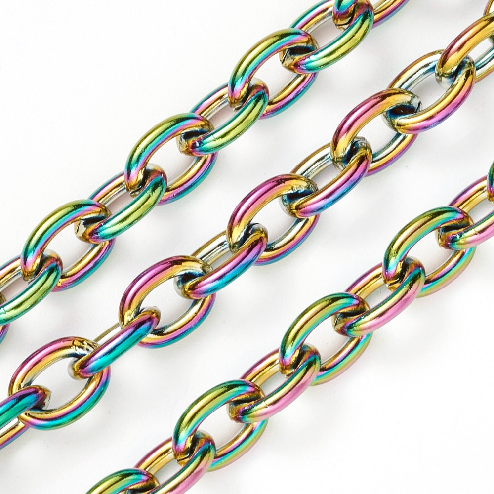 Ion Plating(IP) 304 Stainless Steel Cable Chains, Unwelded, with Spool, Rainbow Color Sold by the meter