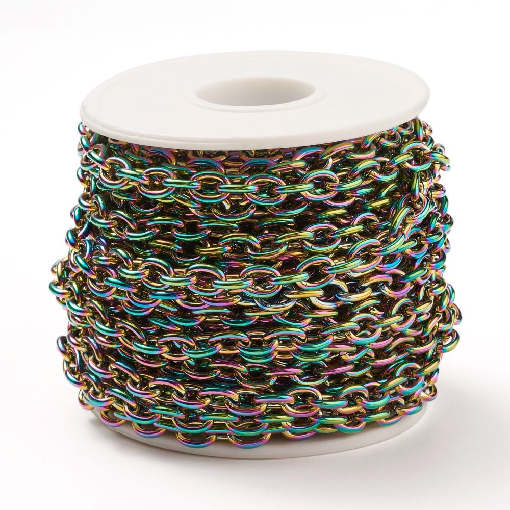 Ion Plating(IP) 304 Stainless Steel Cable Chains, Unwelded, with Spool, Rainbow Color