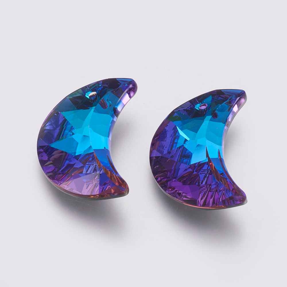 K9 Glass Rhinestone Pendants, Faceted, Moon 2 Pack asst colors