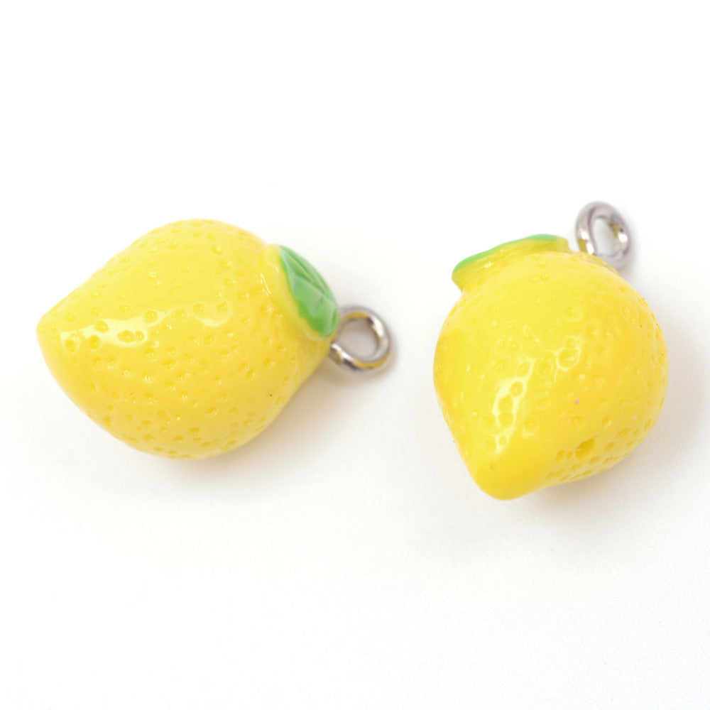 Lemon Resin Pendants, with Platinum Plated Iron Findings, Yellow
