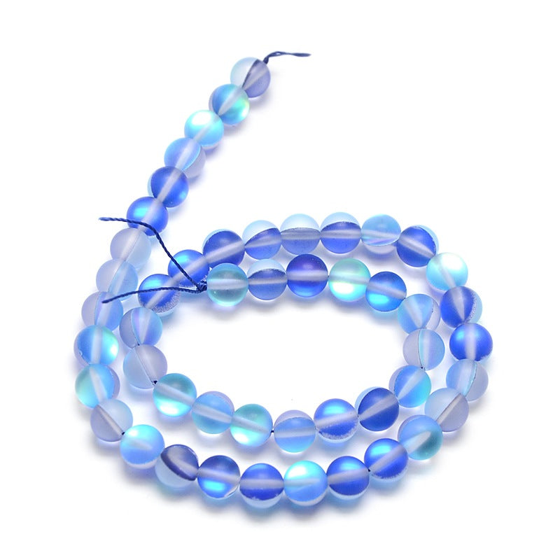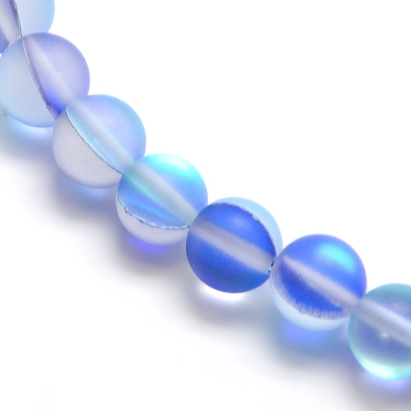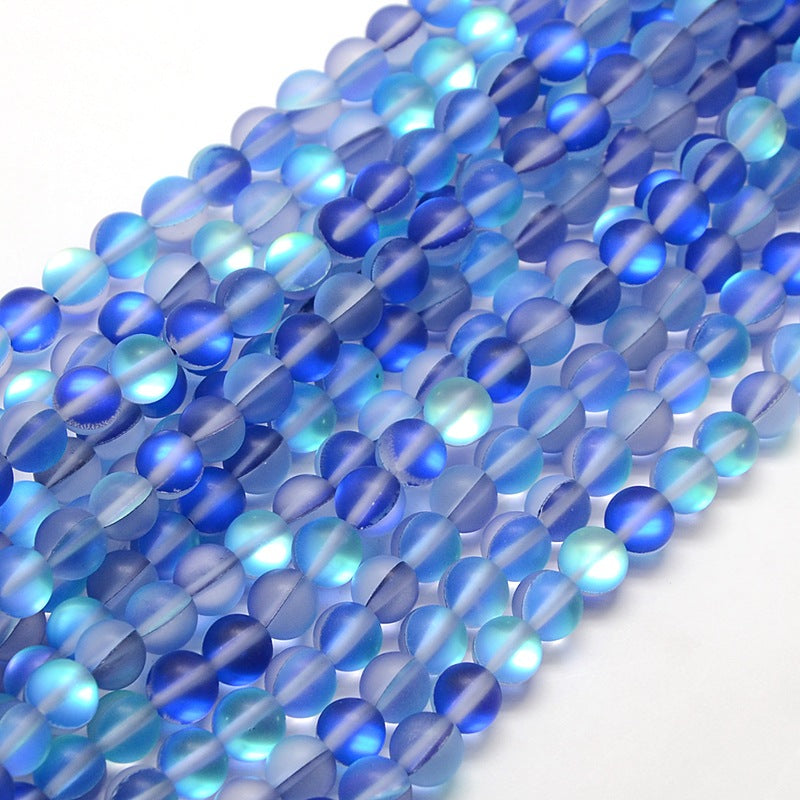 Mermaid Glass Holographic Beads, Half AB Color Plated, Frosted, Round, Blue 8mm
