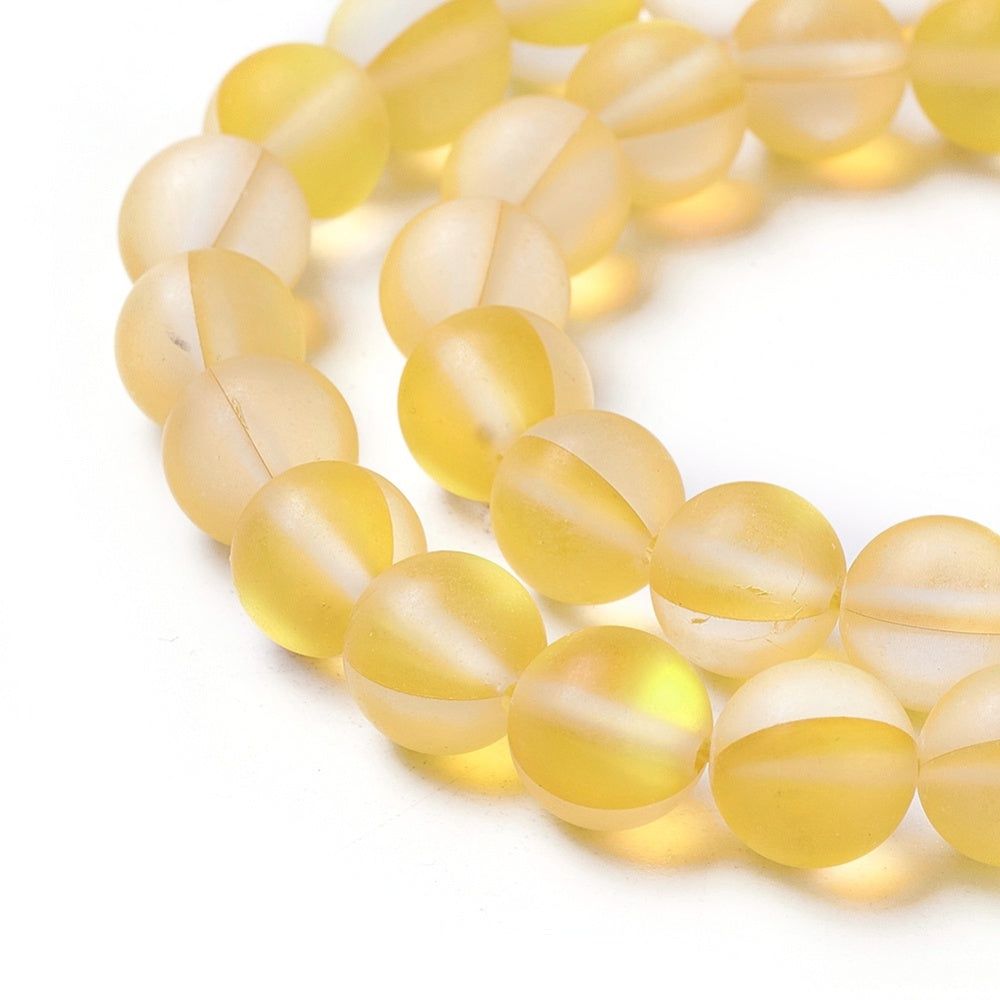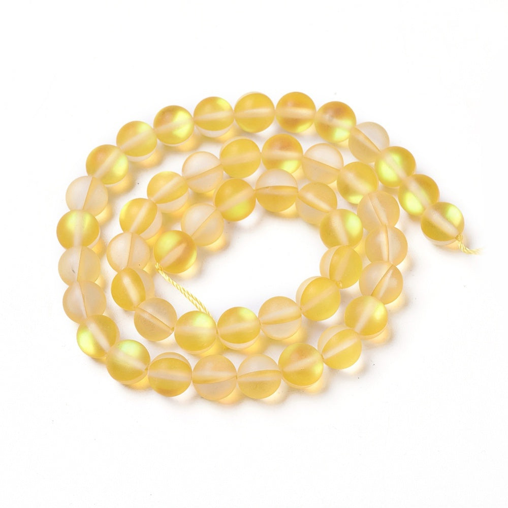 Mermaid Glass Holographic Beads, Half AB Color Plated, Frosted, Round, Yellow 8mm
