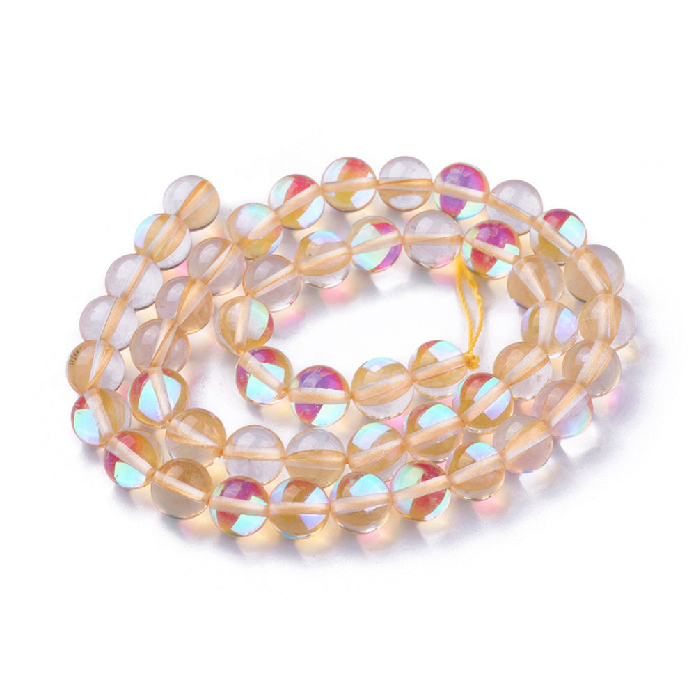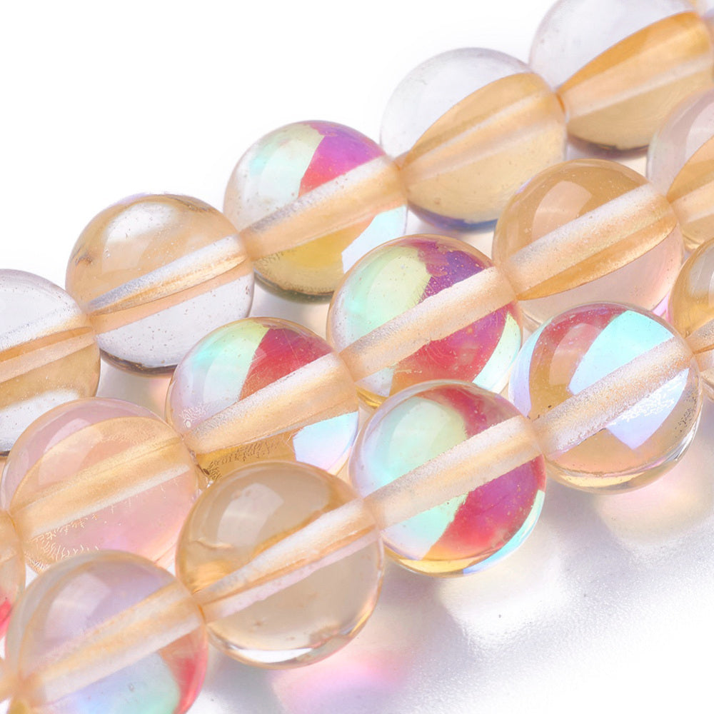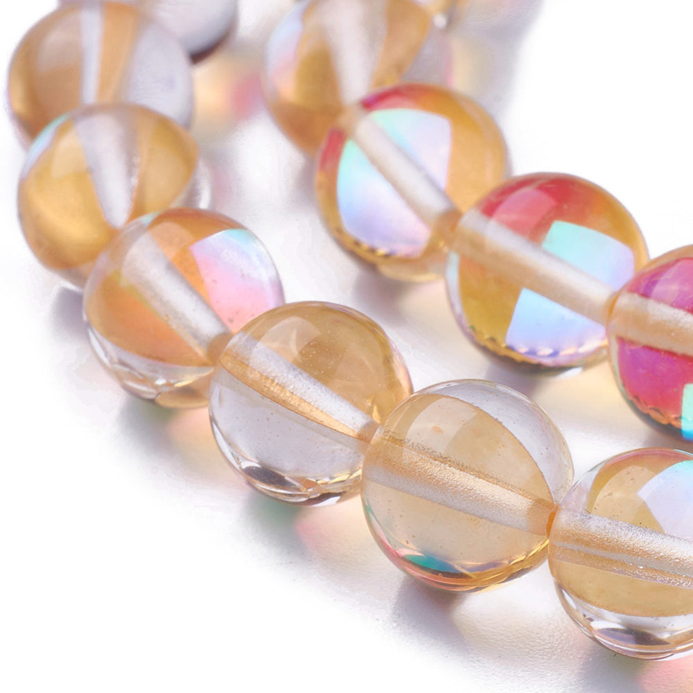 Mermaid Glass Beads Strands, Dyed, Holographic Beads, Half AB Color Plated, Round, Peach